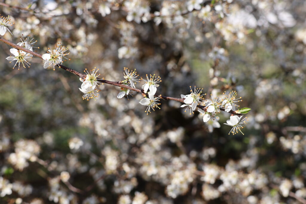 07.04.2026: Binnekanal Inwil, Dietwil, Oberrüti (AG, LU). Ein blühender Schwarzdornzweig am Kanal