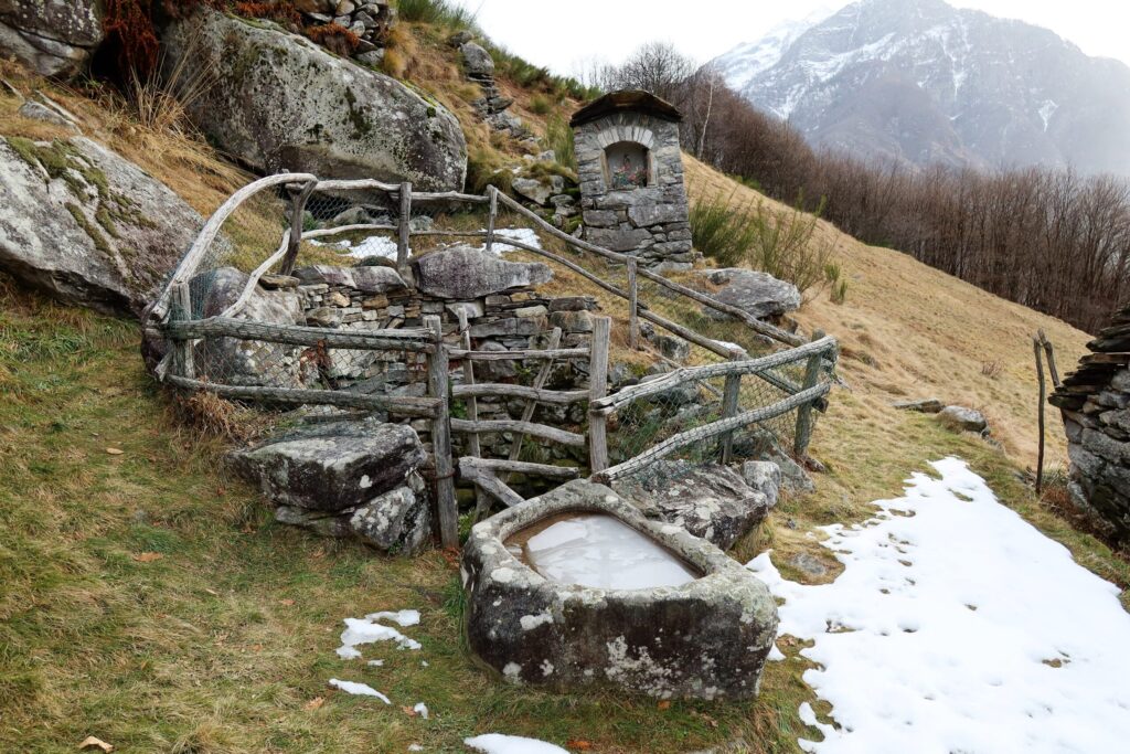 Die Meiensässen Revöira und Ca d Dént finden sich auf einem schwach ausgeprägten, südexponierten Rücken. Weil es keinen Bach und keine Quelle in der Nähe hat, litt das Gebiet unter Wassermangel. Einfallsreich hat man darum mit allen Mitteln Wasser gesammelt, mit zahlreichen Wasserbecken und verschiedenen Zisternen.