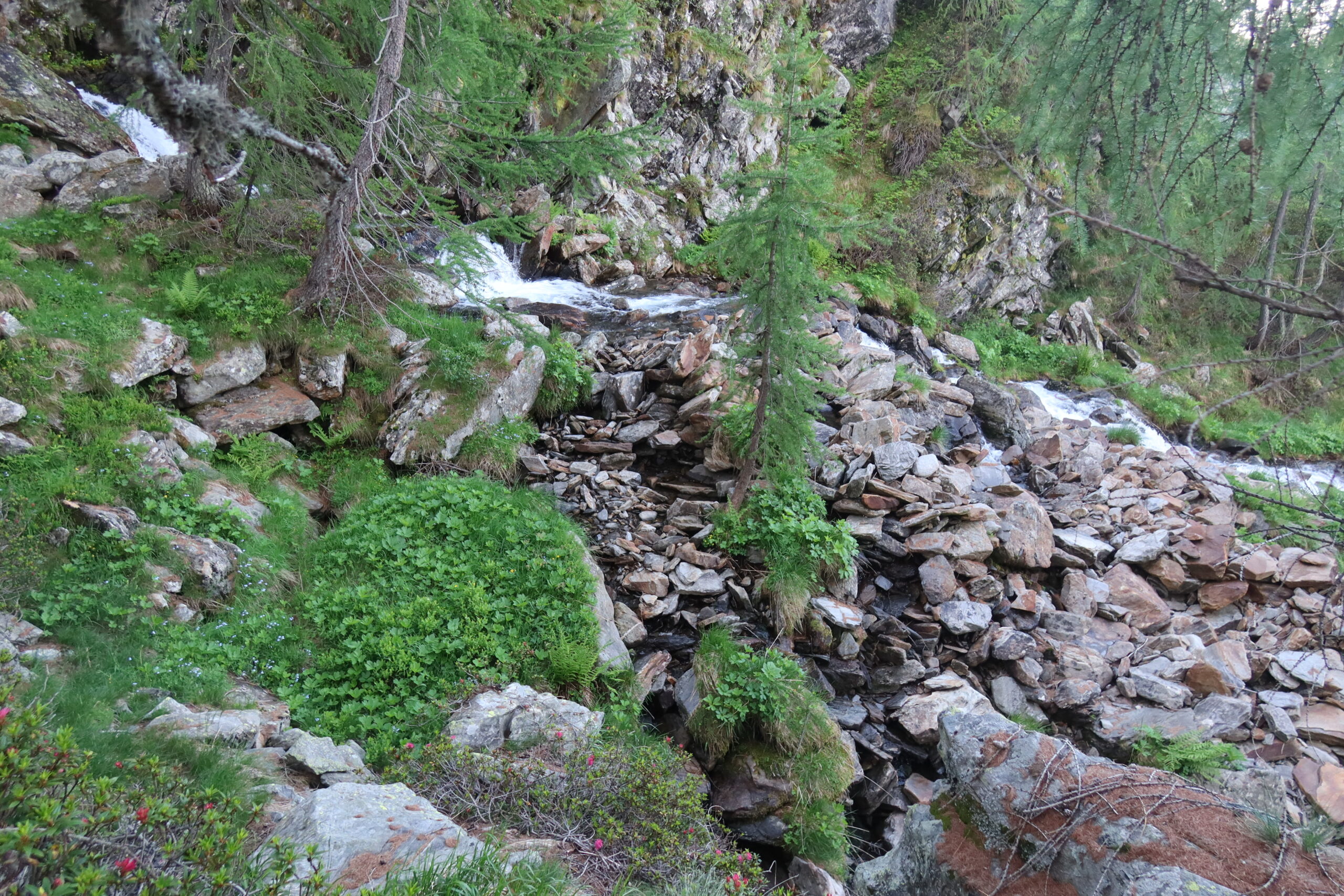 18.06.2025: der Ri di Mognòla teilt sich auf ca. 1920 m ü. M. in zwei Arme auf, eine der seltenen Bachteilungen in der Schweiz!