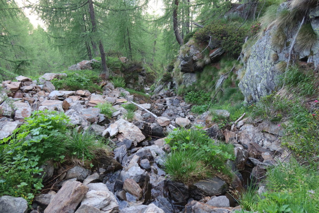 der Ri di Mognòla bei Fusio TI teilt sich auf ca. 1920 m ü. M., natürlich, in zwei Arme auf. Ein seltenes Phänomen in der Schweiz.